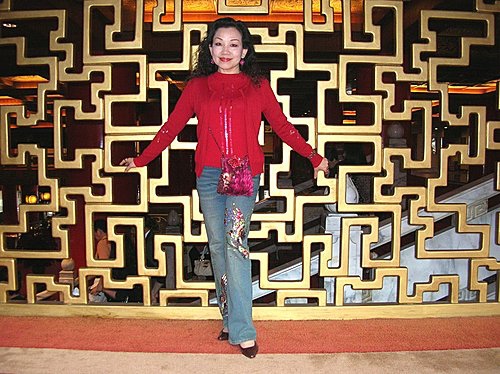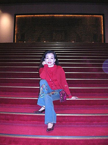 我倆長長的身影~於黃昏、赴頒獎晚宴前~攝於大門前