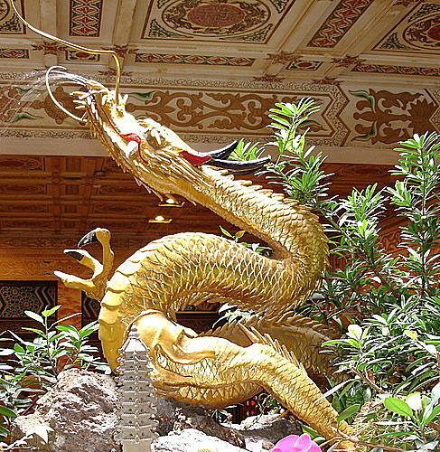 金龍是日本時代留下的三爪龍,牠原是銅作的,飯店將牠漆上金色~成為耀眼的金龍!