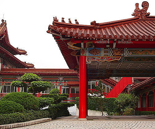 圓山飯店極富中國味,樑柱和古典燈籠的大紅色調帶出濃厚東方風情。