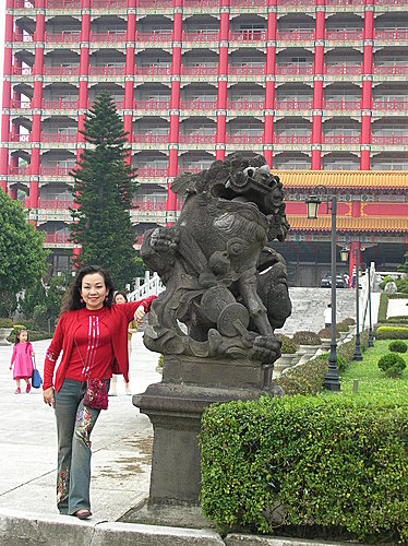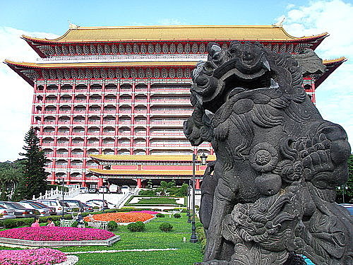 地處的劍潭山頭,突出於台北盆地之上,在風水學上地理位置極佳,飯店的中國式建築上